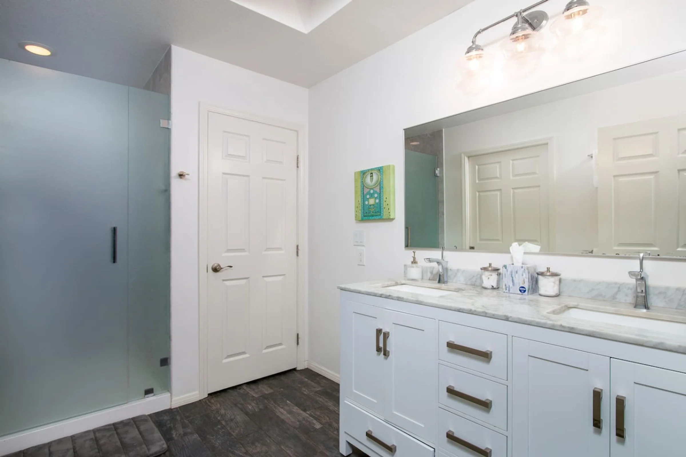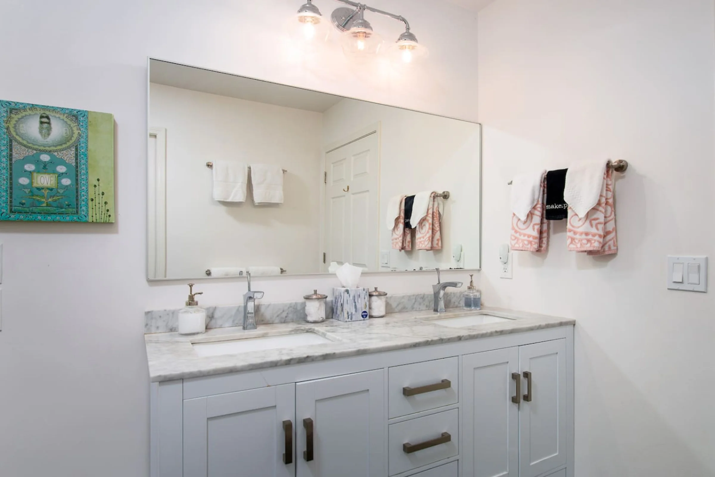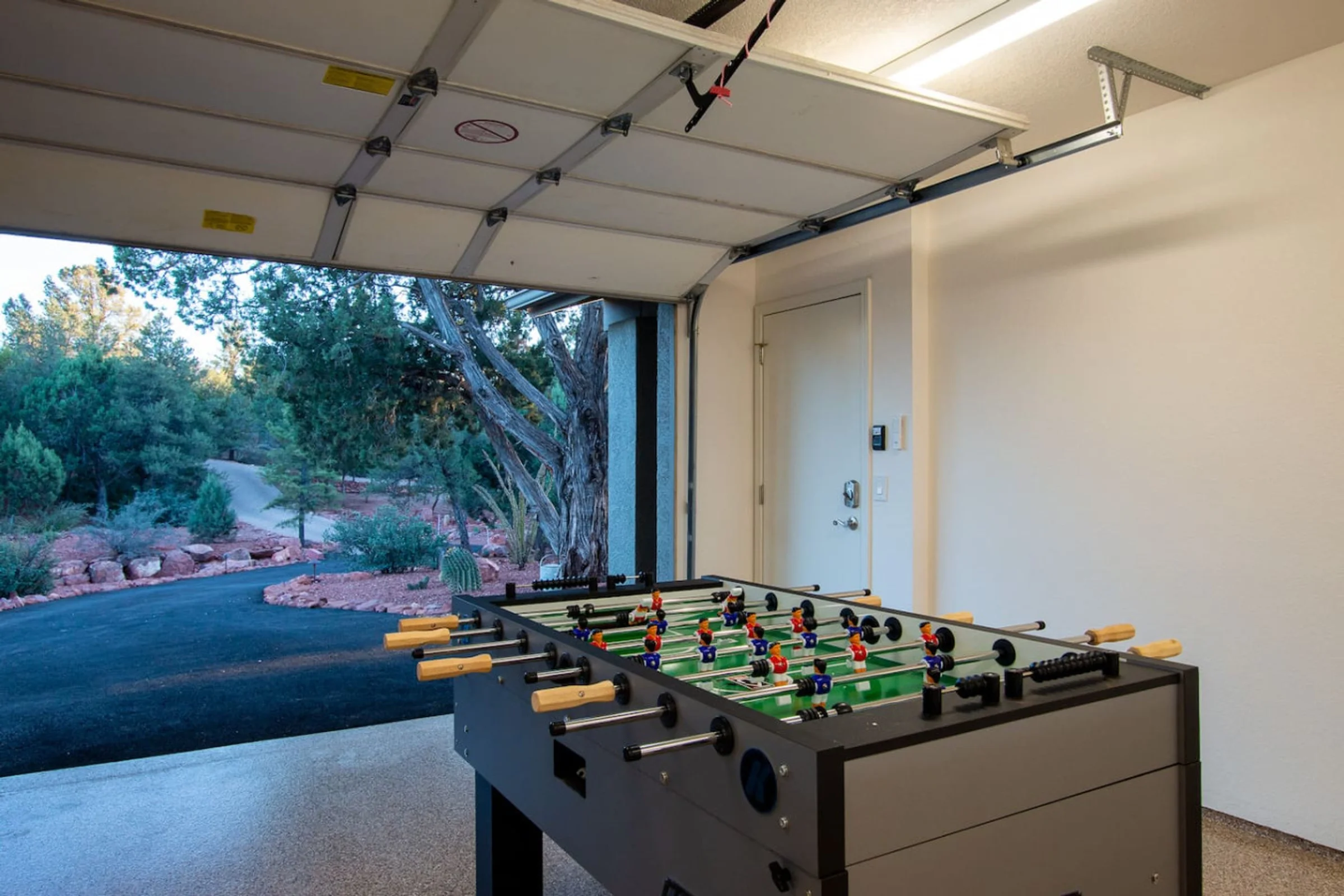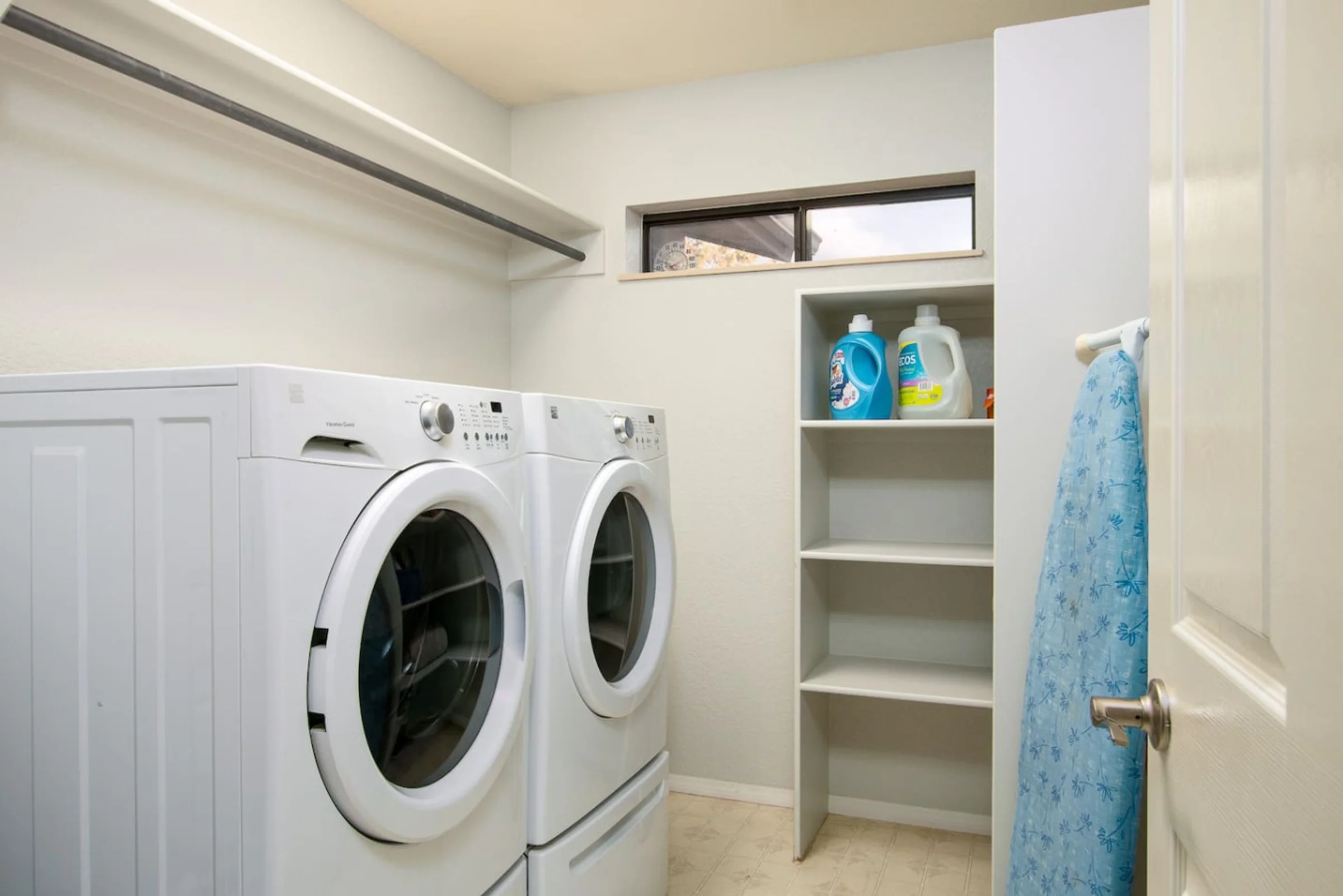 Two bedrooms (California King and Queen), a sleeper sofa that makes it a six-sleeper for small families, a fully-equipped kitchen, in-unit laundry, and a dedicated spot for bikes. West Sedona keeps you close to everything — Whole Foods at three miles, Dry Creek trailhead at six minutes, Cathedral Rock at fifteen.